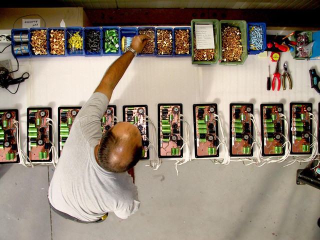 Từng chiếc loa được lắp ráp rất cẩn thận: