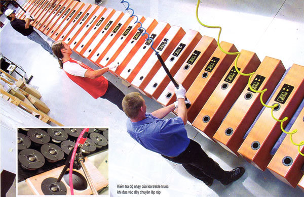 Mỗi thùng loa khi lắp ráp xong đều được kiểm tra các thông số kỹ thuật như trở kháng, đáp tuyến tần số, độ nhạy… bằng máy vi tính. Các thông số này được so sánh với một đôi loa tham chiếu cùng loại để xác định độ chính xác. Việc lắp ráp được công nhân tiến hành rất thận trọng, để tránh làm trầy xước lớp mặt bóng đẹp tinh tế của vỏ loa, những đôi găng tay trắng là điểm nổi bật của phân xưởng này.